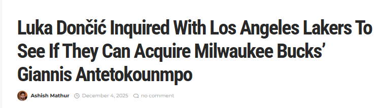 2025-12-05 06:10北京时间12月5日,据福克斯体育记者卢-卡内利斯透露,NBA超级球星卢卡-东契奇曾向洛杉矶湖人方面询问,球队是否有能力从密尔沃基雄鹿队交易得到字母哥。字母哥曾在休赛期表达了离队意愿,其第一心仪下家为纽约尼克斯。