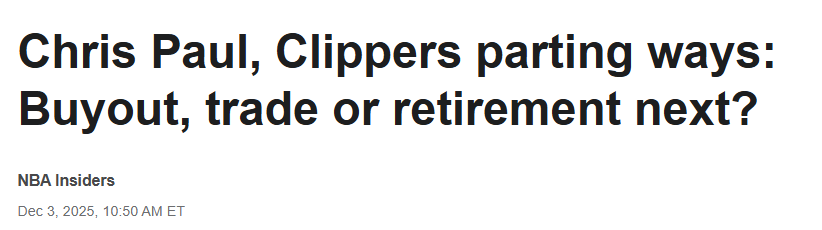 球队接下来将何去何从?哪些球队可能有意在赛季剩余阶段引进保罗?保罗曾在11月透露自己计划2026年退役,倘若这便是他生涯的终点,他的NBA生涯又将被如何铭记?ESPN解读了6大相关悬念——