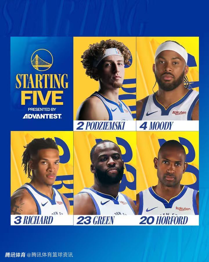 勇士首发阵容为:追梦、霍福德、波杰姆斯基、穆迪、理查德