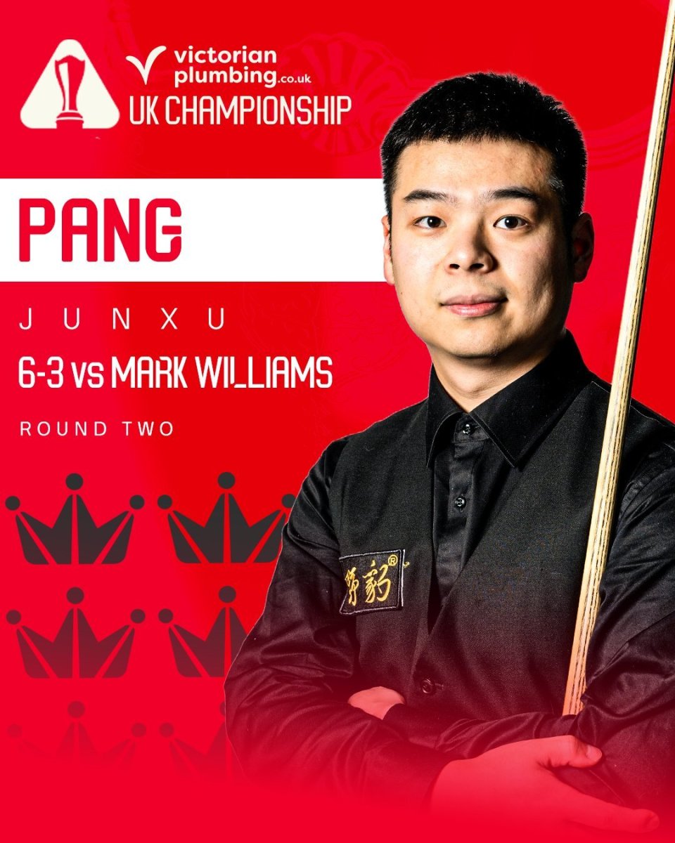 庞俊旭在16进8轮次的对手是老将马克-威廉姆斯。比赛中庞俊旭轰出了2杆50+和1杆破百的表现,在被对手追到3-4之后连赢2局,从而以6-3将威廉姆斯淘汰出局,成功锁定了一个八强席位。