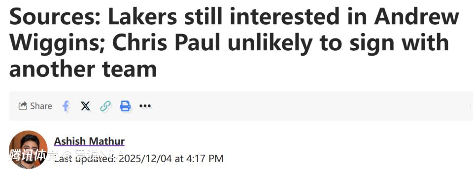 另外,湖人队仍有意通过交易得到热火队小前锋安德鲁-维金斯。