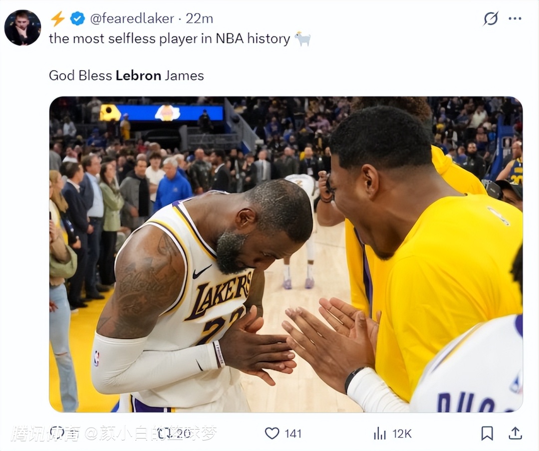 湖人球迷:这就是NBA历史上最无私的球员-GOAT,愿上帝一直保佑勒布朗-詹姆斯。