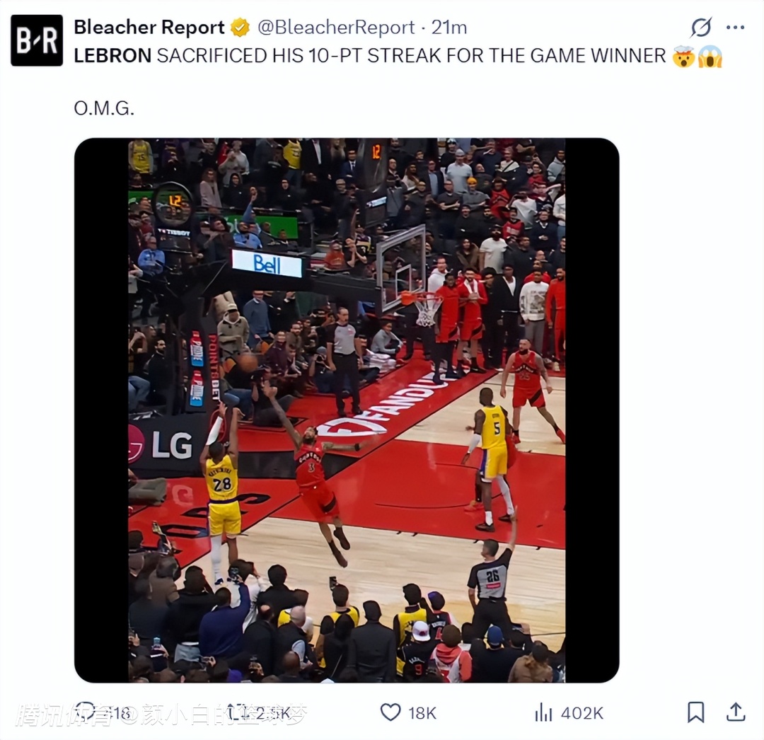 勒布朗6909天神迹终结!直播员高呼OMG 美媒用回忆证伟大再赞山羊