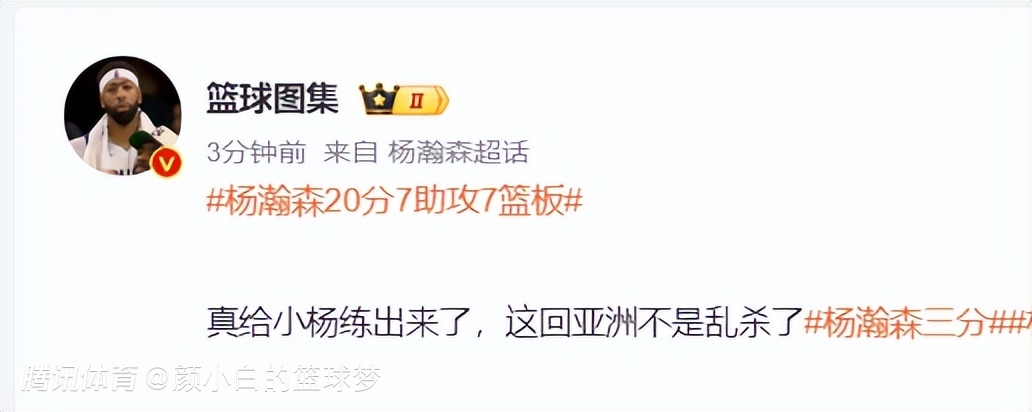 贾磊:杨瀚森填满数据栏,我们看到他的进步,很显然杨瀚森随着比赛、训练的适应后开始找到比赛节奏。