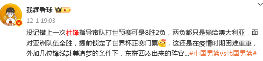 但在世预赛的窗口期,中国男篮拥有比较完整阵容的配置,杜锋取得8胜2负的战绩提前晋级世界杯正赛,输2场比赛则是不敌澳大利亚。