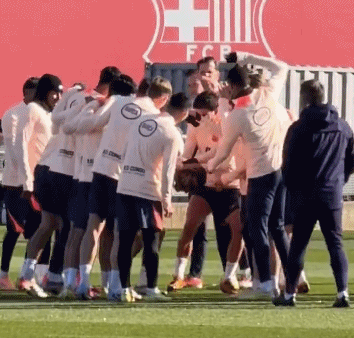 因为鼻梁骨折,埃里克-加西亚近期都戴着面具训练、比赛。巴萨官方宣布埃里克-加西亚续约,在巴萨的训练场上,队友们站成两列,用“围起来拍打”的传统方式,祝贺埃里克-加西亚续约。