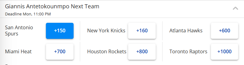 字母哥下家赔率突变!马刺超越尼克斯成为头号热门 火箭排名第五