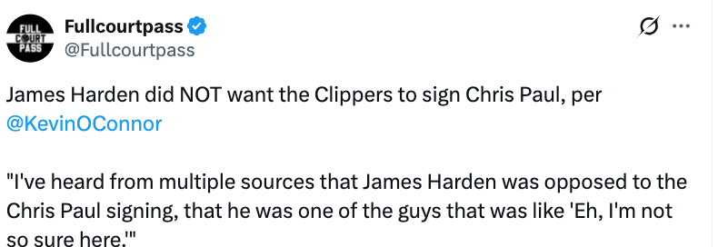 休城芥蒂仍未解除?奥康纳:哈登在今夏并不希望快船签下保罗