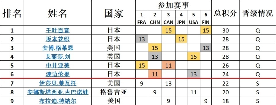 分站赛之后,共有四位日本选手和两位美国选手晋级;