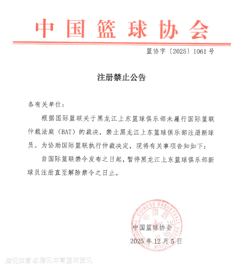 中国篮协处罚公告:黑龙江上东篮球俱乐部因为拖欠外援薪水,未履行FIBA仲裁决定,中国篮协暂停该俱乐部注册新球员。