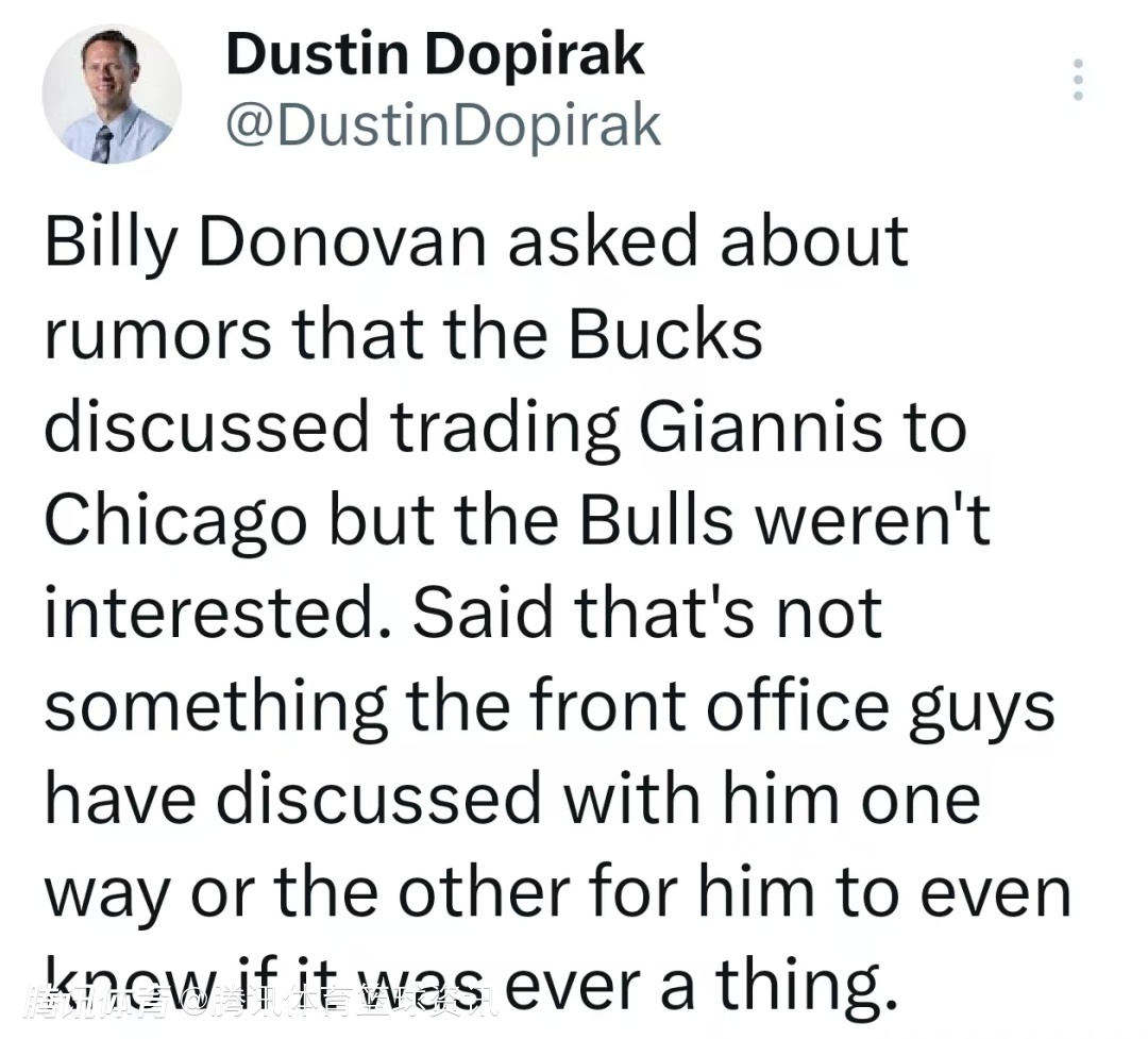 公牛没兴趣换字母哥?多诺万回应交易流言:管理层从未与我沟通此事