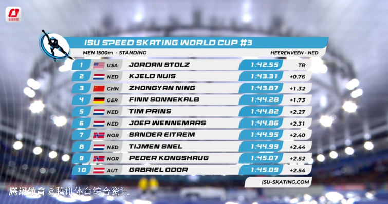 最终,宁忠岩以1分43秒87的成绩获得季军,凯尔-内斯以0.56秒的优势居亚,斯托尔兹则豪取三连冠。该项目世界杯总积分榜上,宁忠岩暂列第四位。