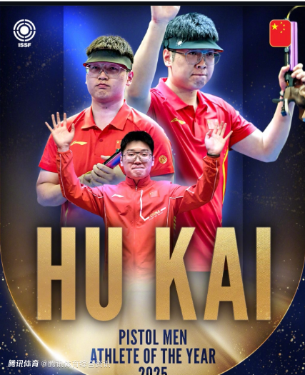 胡凯本年度表现亮眼,收获射击世界杯四站全胜。4月秘鲁站以246.4环夺冠,差0.1环破世界纪录;9月宁波站实现四连冠。全运会表现同样突出,10月包揽男子团体和混双两金,混双搭档姚千寻破世界纪录。世锦赛以243.3环摘男子10米气手枪银牌,搭档姚千寻决赛16-10力克印度组合,获混合团体金牌。