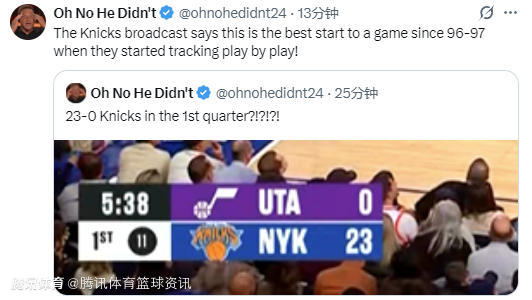 2025-12-06 09:30北京时间12月6日,NBA常规赛继续进行,尼克斯队对阵爵士队。在首节比赛中,尼克斯队开局打出了一波23-0的攻击波,引发了网络热议。