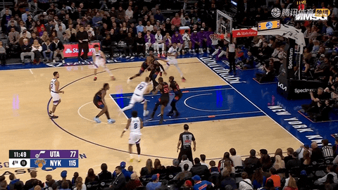 第三节还剩9分06秒到1分钟期间,布伦森手感火热,单节砍下20分,帮助尼克斯将比分从53-80拉开到74-113,领先优势被扩大到41分,比赛胜负基本失去悬念。