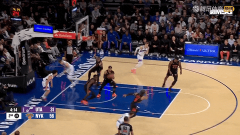 但尼克斯很快再度发力。第二节还剩4分06秒时,麦克布赖德接迪亚瓦拉助攻命中三分,拉开一波外线攻势,此后他又在还剩3分33秒和2分52秒时连续投进三分,将比分从31-59扩大到37-66。