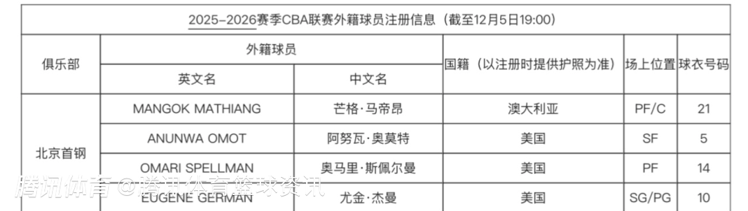 另外球队也完成了马帝昂的注册,他将身披21号球衣为球队出战,目前北京男篮已经集齐了四名外援,其余三人分别是杰曼、斯佩尔曼和奥莫特,三人都已经为球队打了俱乐部杯赛的首战。