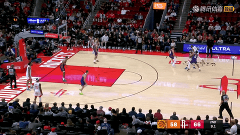 第二节结束压哨,奥科吉在00秒时得分,将半场比分定格为太阳58:68落后火箭。