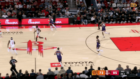 末节开打还剩11分44秒时,古德温补篮命中,还剩11分19秒时布耶突破挑篮得手,太阳连拿4分缩小分差。随后火箭由小史密斯、亚当斯等内外开火,将比分保持在三位数领先。第四节还剩3分13秒至还剩1分31秒时,太阳连续迫使火箭出现包括霍勒迪失误、卡佩拉走步和泰特失误在内的三次失误,将比分从89:115追到94:115。