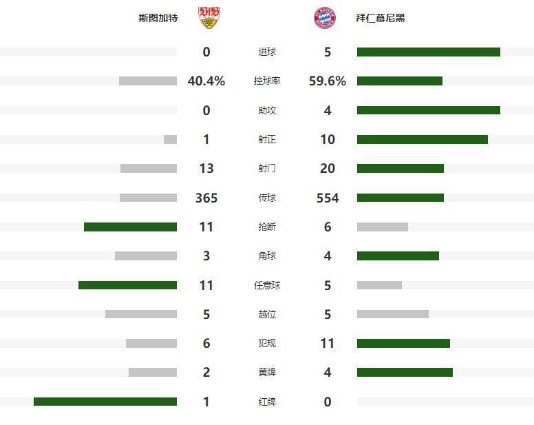 不过第66分钟替补登场的凯恩,还是帮助拜仁终结了胜负的悬念,大禁区前沿突施冷箭,攻破了斯图加特的球门,将比分改写为了2-0,攻势不减的南大王,第78分钟靠着斯坦尼西奇的进球,将领先的优势扩大到了3球,3分钟之后,奥利塞又为球队赢得点球,凯恩主罚命中上演梅开二度的好戏,比赛最后时刻,奥利塞助攻凯恩再入一球,将全场比分定格为了5-0。
