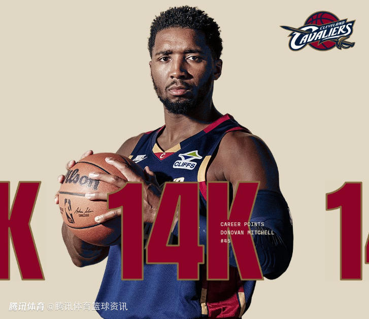 值得一提的是,米切尔突破14000分的进球来自上半场最后时刻,他命中了一记压哨三分球,让自己成功完成里程碑。