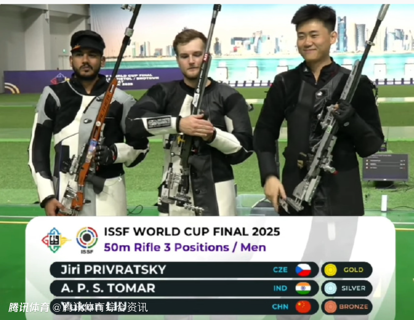 2025-12-07 19:40北京时间12月7日,在多哈进行的射击世界杯总决赛结束步枪三姿比赛。在男子比赛中,奥运会和世锦赛双料冠军刘宇坤发挥起伏较大,夺得铜牌。赵文宇和在资格赛以598环打破世界纪录的田珈铭分列第六和第八。捷克名将普里夫拉茨基在跪射和立射两项遥遥领先,最终以403.6环夺冠,印度托马尔获得亚军。