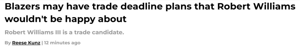 2025-12-08 05:30北京时间12月8日,据NBA名记Jake Fischer报道,相较于上赛季,开拓者预计会在2月6日交易截止日前,更愿意送走罗伯特-威廉姆斯。Fischer在文中写道:“据我所知,开拓者本赛季对交易罗伯特-威廉姆斯的意愿要高于上赛季,那时候球队还为这位伤病频发的内线球员设置了高额要价。”