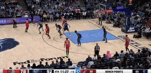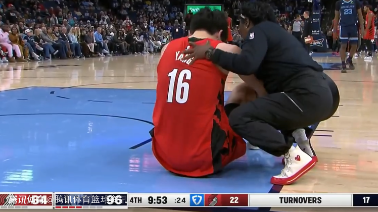 随后一个回合,杨瀚森在遭遇包夹的情况下,被伊迪打到面部,痛苦倒地,在地上躺了半天没起来,灰熊之后掀起反击,开拓者主帅斯普利特对于这个判罚极为不满,向裁判抱怨没有中断比赛,而这个球也被记为杨瀚森的失误。