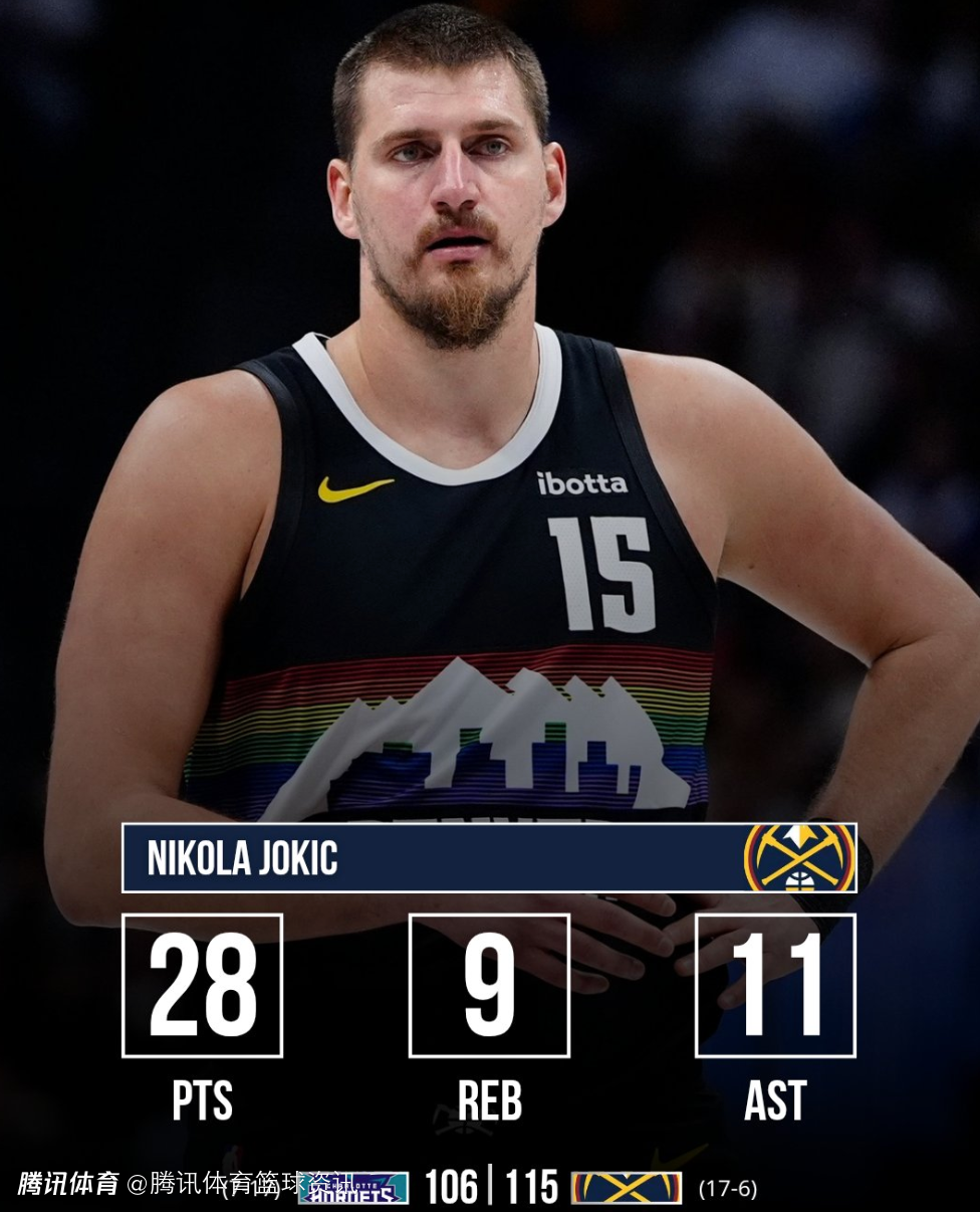 历史独一档!约基奇28+9+11助队豪取客场10连胜 25+10助攻次数远超其他中锋总和