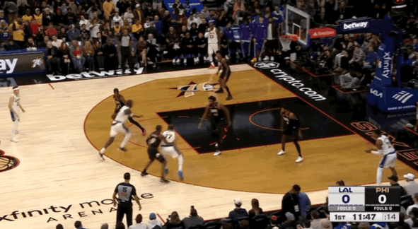东契奇继续带来强势的进攻表现,他利用挡拆再次命中招牌跳投,76人在防守端完全没有限制他的方法。一旦76人对东契奇采取包夹,东契奇能迅速找到空位队友送出妙传,他引领湖人打出一波10-0的进攻高潮,一度帮助湖人取得双位数领先。