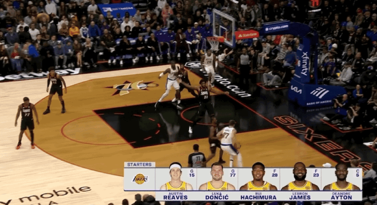 首节比赛,东契奇利用个人能力晃开马克西,利用招牌撤步跳投为湖人取得首次运动战进球,随后再次单挑马克西打进2+1。不过湖人开局防守表现糟糕,被76人打出一波19-9的高潮,迅速落后对手双位数。