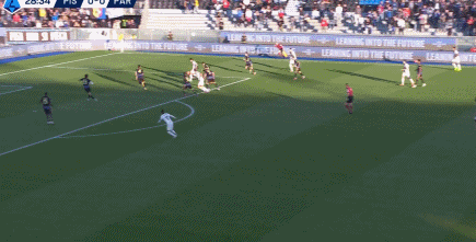 第37分钟,布里奇吉禁区前沿怒射,击中后卫出现折射,仍被门将扑出,但随后VAR介入,卡拉乔洛手球送点,贝内德扎克点射得手,帕尔马打破僵局,1-0。