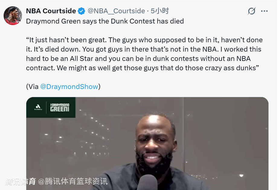 追梦称扣篮大赛已过气:选不出现役NBA球员参赛 不如直接找些扣篮狠人来