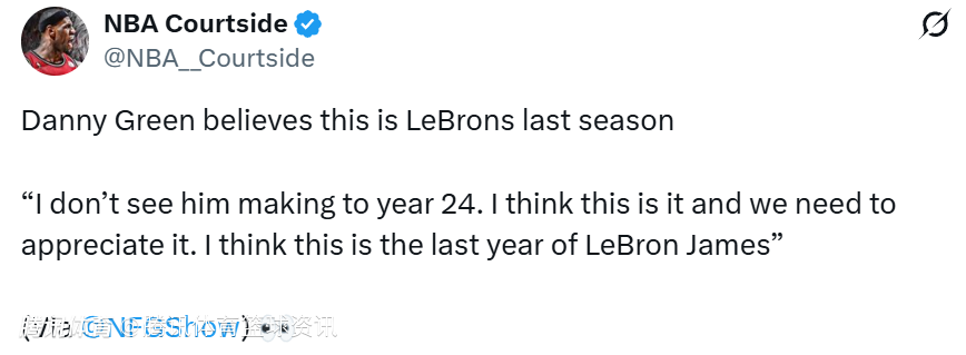 丹尼-格林:本赛季将是詹姆斯最后一舞 身体变化无法支撑征战第24季