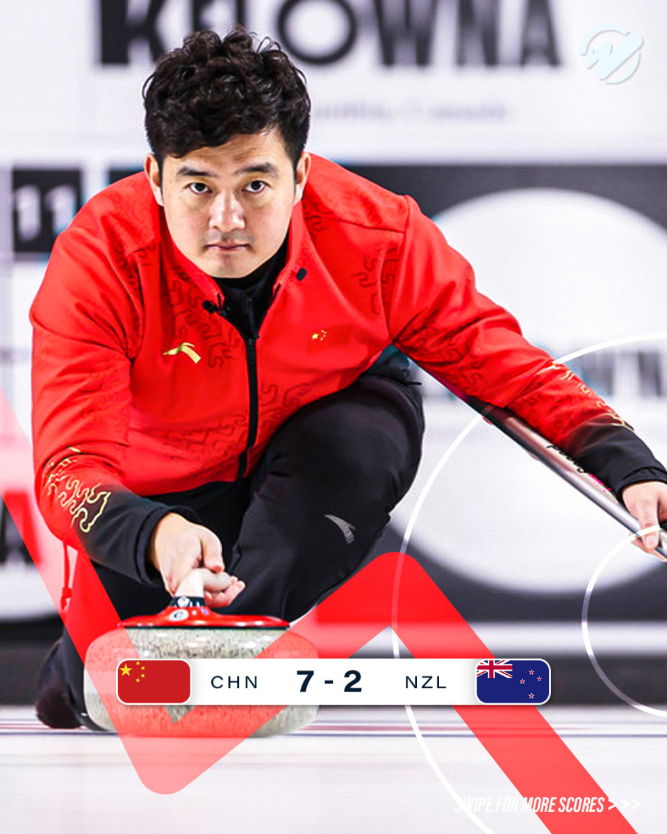 中国冰壶男队7-2大胜新西兰,落选赛迎四连胜!距晋级只差一场
