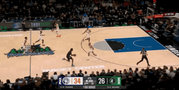 次节比赛开始,伊戈达罗空接暴扣,兰德尔和布耶对飙三分,兰德尔突破打进2+1,奥尼尔三分命中。伊戈达罗勾手得分,戈贝尔空接暴扣,古德温和海兰德对飙三分,马威扣篮得分。爱德华兹三分命中,阿伦突破上篮,戈贝尔空接得分,阿伦三分命中。爱德华兹连造犯规4罚3中,奥尼尔和马威连得5分,森林狼实现三分三连击。