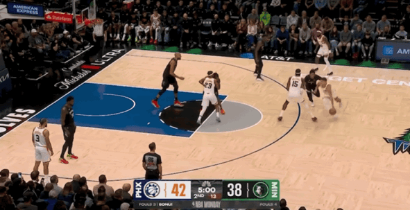 半场比赛结束,太阳61-57领先森林狼。太阳2人上双,马威14分4篮板3助攻,阿伦11分,狄龙8分,奥尔你8分6篮板4助攻。森林狼3人三双,爱德华兹21分,戈贝尔12分8篮板,兰德尔11分3助攻。