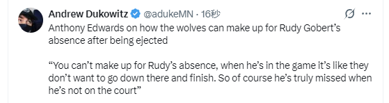 在谈到此役输球的原因时,爱德华兹说道:“对方12号投篮很准,而且第三节中段开始,我们就没了戈贝尔,内线的防守大闸不在了,所以打得格外吃力。”