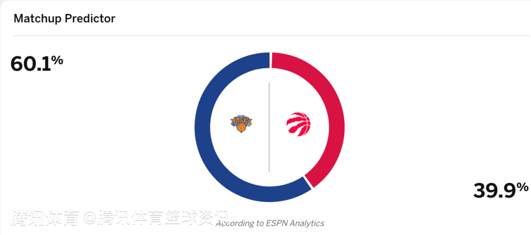 尼克斯本赛季暂时取得16胜7负,近期他们取得3连胜。上场比赛他们以6分击败魔术,首发5人仅有米罗一人得分未上双,其中布伦森拿下全队最高的30分9助攻,本场比赛唐斯出战成疑,如果他没办法披挂上阵,尼克斯的替补阵容,势必得扛起重担,克拉克森上场5中0,没有得分,如果他能在进攻端反弹,扮演奇兵,将会为尼克斯助力不少,另外一名新援亚布塞莱上场得到8分,面对猛龙高大的锋线群,他也需要再进攻端挺身而出才行。