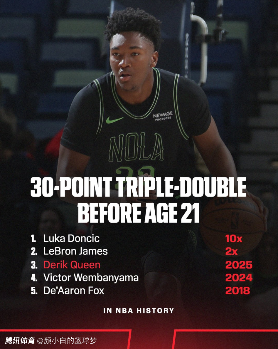 3.奎因成为21岁及以下历史第五位拿到30+三双的球员;