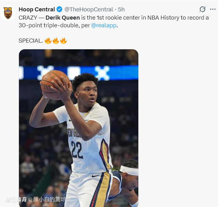6.奎因成为NBA历史上首位拿到30+三双的新秀中锋;