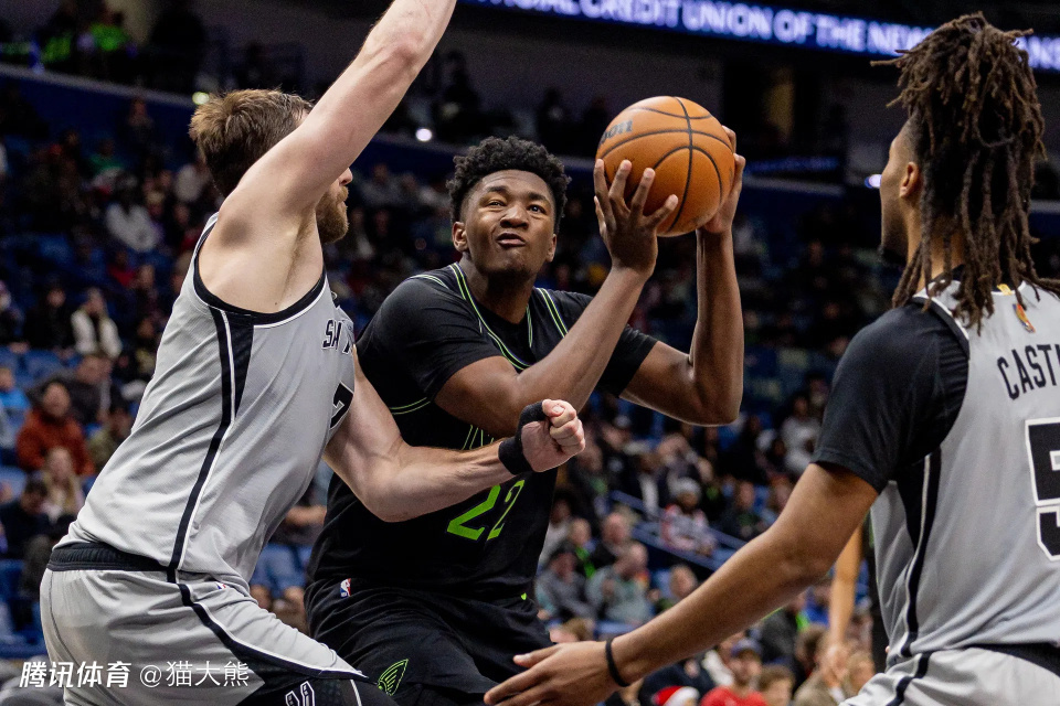 鹈鹕132-135不敌马刺,德里克-奎因出战33分钟,15投11中,13罚11中,拿到33分10篮板10助攻4封盖,他成为NBA历史第一位拿到30+三双的新秀中锋。