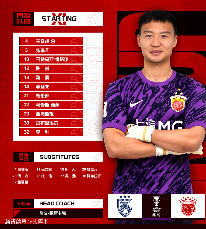 上海海港首发阵容:12-陈威;4-王燊超、5-张琳芃、13-魏震、29-亚历斯祖、32-李帅、10-维塔尔、21-梅伦多、22-茹萨、14-李圣龙、30-加布里埃尔