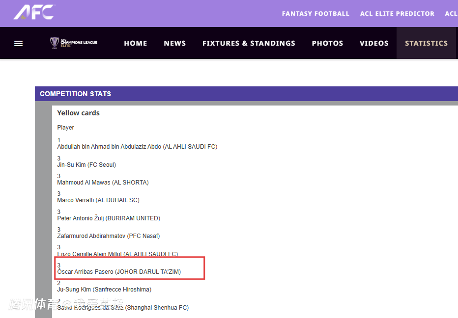 根据亚足联精英联赛规则,亚冠精英联赛阶段累计3张黄牌应该自动停赛一场。而阿里巴斯在本赛季亚冠第1轮、第4轮和第5轮各吃到了一张黄牌,根据规则他无法出战海港。然而本场比赛,他却先发登场,明显违反规则。