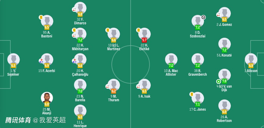 第88分钟,维尔茨替补登场被巴斯托尼拉倒制造点球,索博斯洛伊主罚命中完成绝杀,利物浦1-0国米。