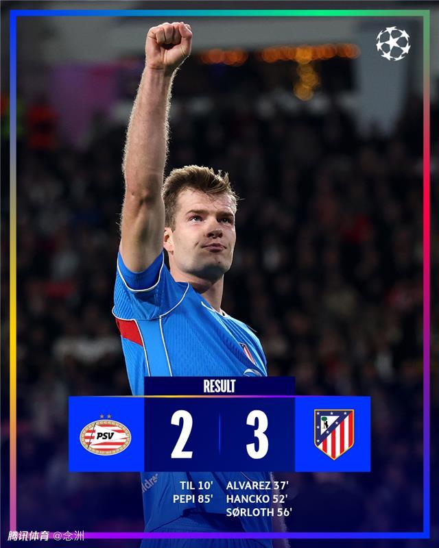 马竞客场3-2逆转埃因霍温。蒂尔先拔头筹,阿尔瓦雷斯扳平比分,汉茨科、瑟尔洛特连进两球,佩皮扳回一城。