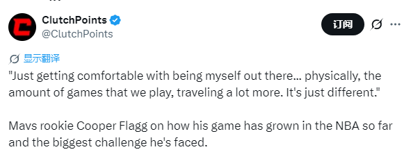 2025-12-10 08:00北京时间12月10日,独行侠球员弗拉格接受媒体采访,谈及自己迄今为止的NBA赛场成长,以及遭遇的最大挑战。