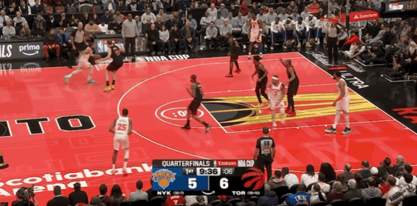 布伦森联动唐斯持续攻筐,频繁在禁区给到猛龙很大的防守压力,伴随着布伦森抛投打进,双方分差首次来到双位数。尼克斯打出狂野的防守反击,成功提速引领球队节奏压制猛龙,让猛龙长达2分57秒一分不得,尼克斯趁势打出一波9-0的进攻高潮。