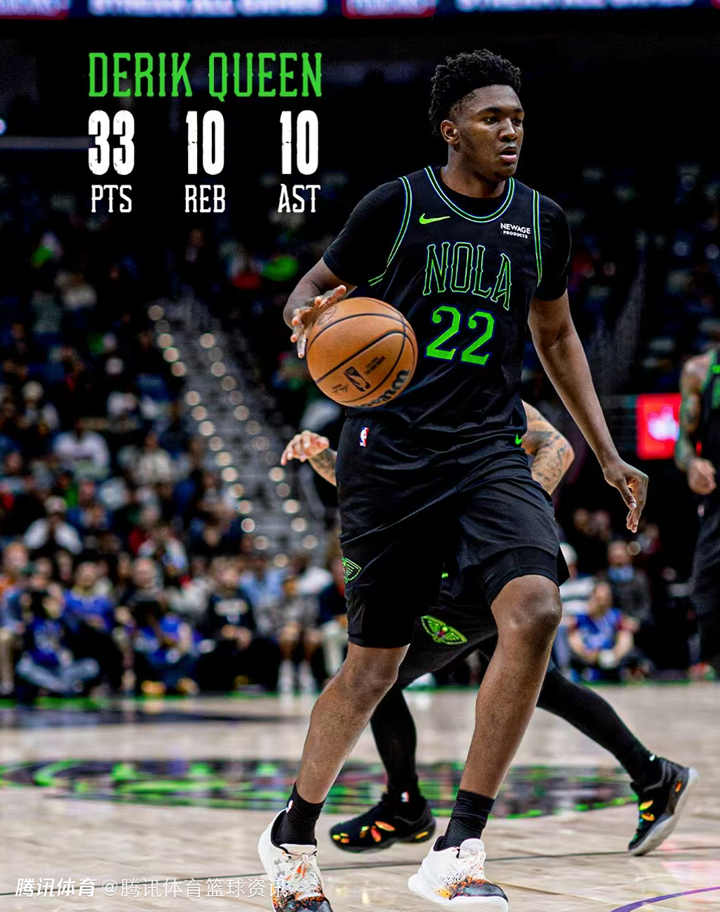 此前,在鹈鹕132-135不敌马刺的比赛中,德里克-奎因出战33分钟,15投11中,其中三分球1投0中,罚球13投11中,得到33分10篮板10助攻4封盖。他就此成为2025届新秀中首位斩获三双的球员,并成为本世纪第五位砍下30+三双的新秀,跻身以下球员行列:里夫斯。