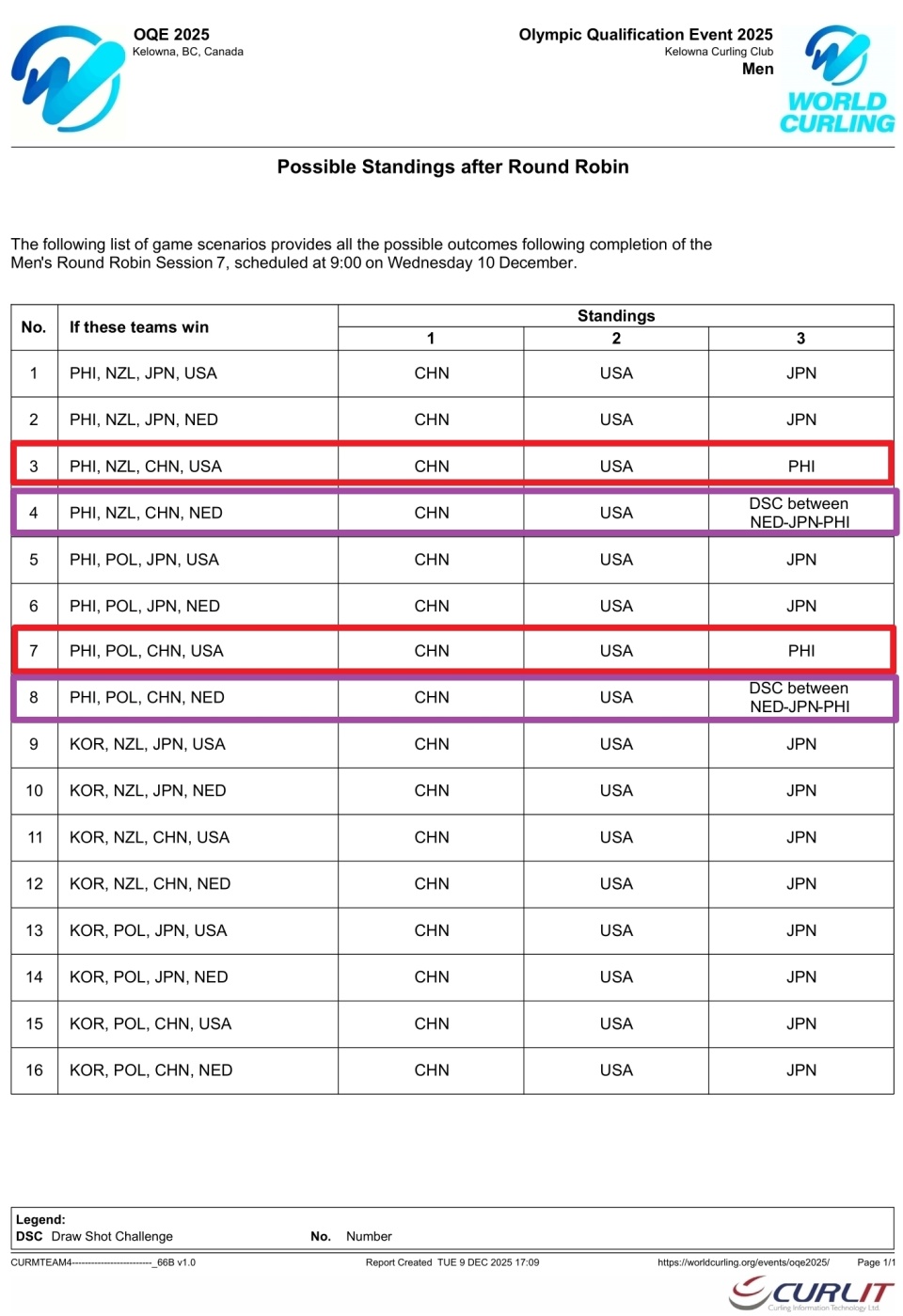 而第六轮的关键场,出现美国队9:3大胜菲律宾,加上菲律宾第五轮9-7逆转日本,让第三个席位赛资格的竞争,在最后一轮循环赛之前,出现了16种不同的结果。